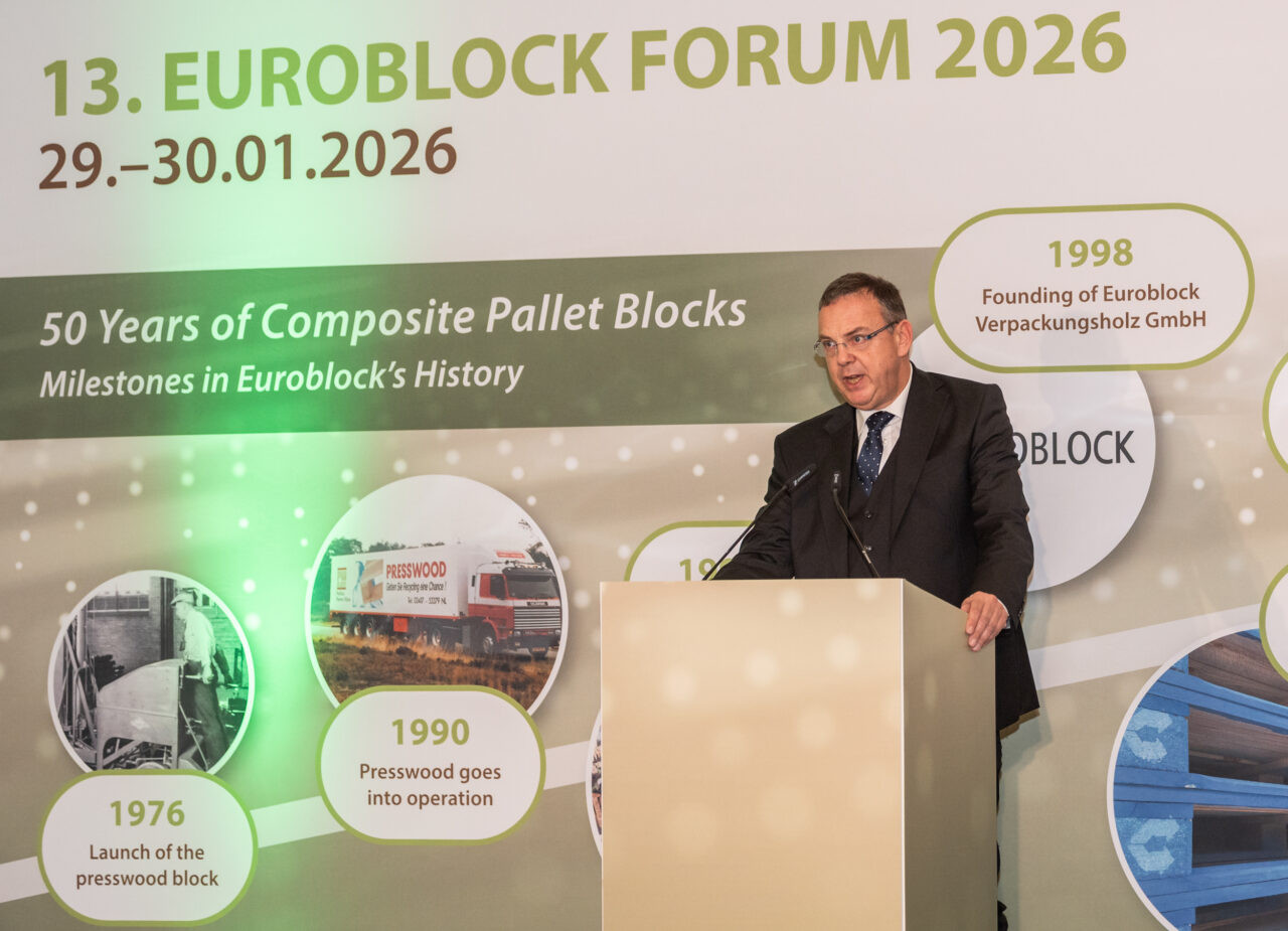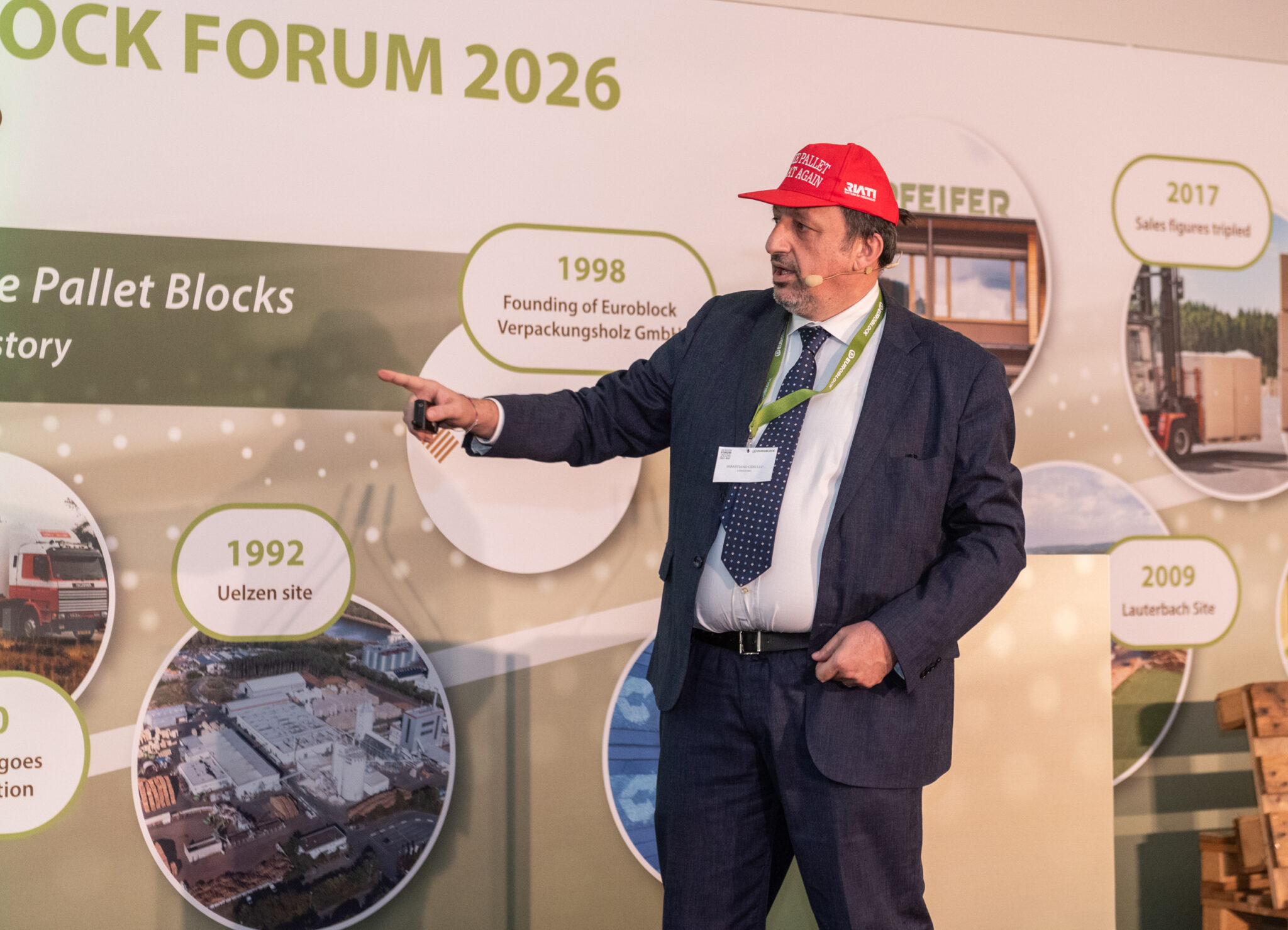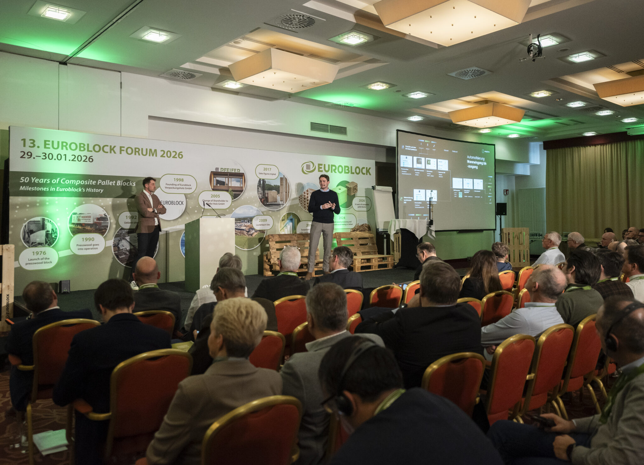 L’Euroblock Forum è uno dei più grandi incontri di settore nel settore dei pallet in Europa. Dal 1994, Euroblock-Verpackungsholz GmbH organizza questo evento di scambio di due giorni ogni tre anni. Questa volta, quasi 190 partecipanti provenienti da 25 paesi tra Europa, Asia e oltreoceano hanno accettato l’invito al Munich Airport Marriott Hotel di Freising. I presentatori Michael Pfeifer (Amministratore Delegato di Pfeifer Holding GmbH) e Leonhard Scherer (Amministratore Delegato di Euroblock) sono rimasti entusiasti dell’elevato interesse riscontrato, a dimostrazione della continua rilevanza del forum.