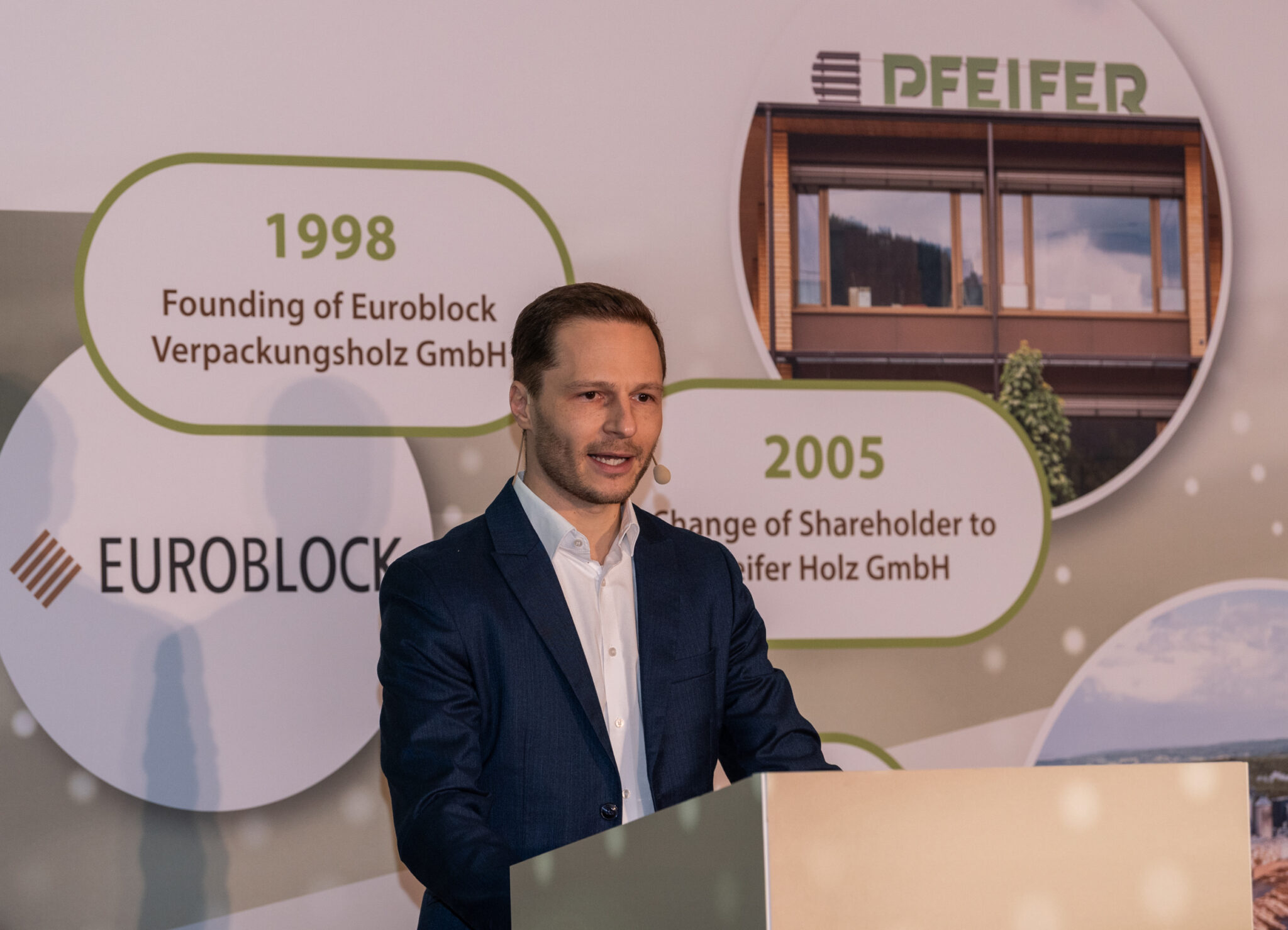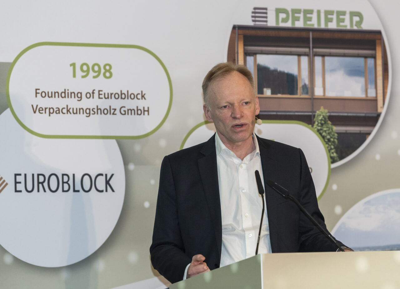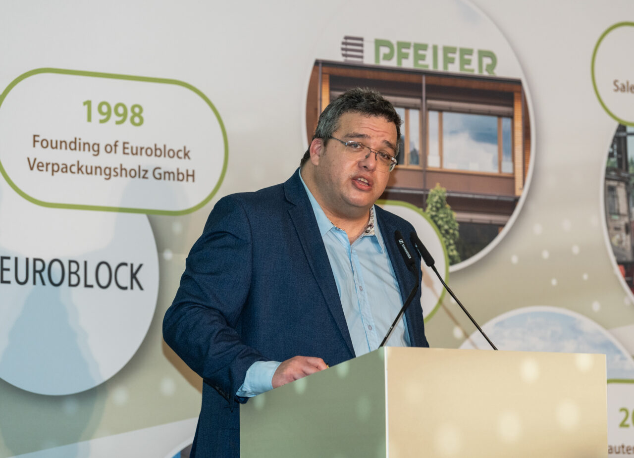 L’Euroblock Forum è uno dei più grandi incontri di settore nel settore dei pallet in Europa. Dal 1994, Euroblock-Verpackungsholz GmbH organizza questo evento di scambio di due giorni ogni tre anni. Questa volta, quasi 190 partecipanti provenienti da 25 paesi tra Europa, Asia e oltreoceano hanno accettato l’invito al Munich Airport Marriott Hotel di Freising. I presentatori Michael Pfeifer (Amministratore Delegato di Pfeifer Holding GmbH) e Leonhard Scherer (Amministratore Delegato di Euroblock) sono rimasti entusiasti dell’elevato interesse riscontrato, a dimostrazione della continua rilevanza del forum.
